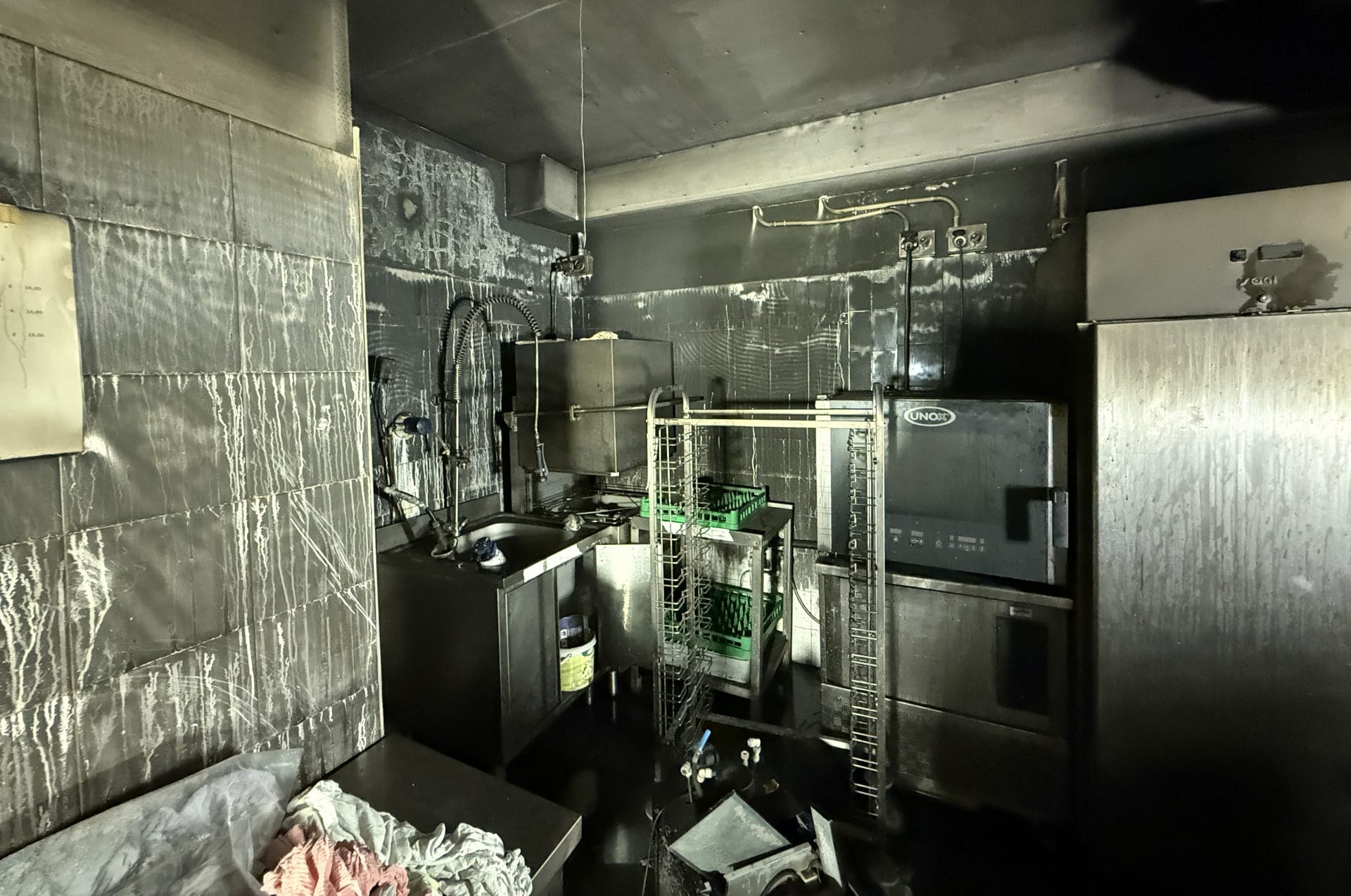 Con la messa in sicurezza completata, l’attenzione si concentra sulla bonifica del ristorante, profondamente contaminato dal fumo e dal particolato incendio. BELFOR esegue una decontaminazione chimica approfondita, indispensabile per rimuovere i residui dell’incendio e restituire salubrità agli ambienti.