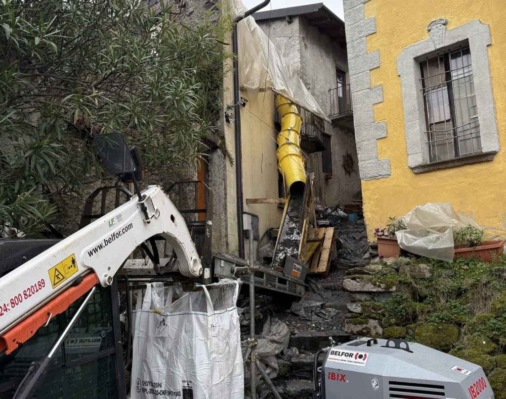 Dopo il primo sopralluogo, le attività si concentrano sull’area ristorante, dove le condizioni strutturali del solaio rendono necessario intervenire con un sistema di puntellatura di sostegno, fondamentale per mettere in sicurezza la struttura e consentire alle squadre di operare senza rischi.